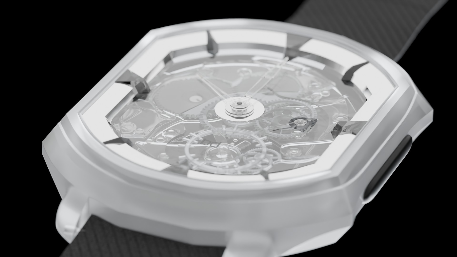 This timepiece concept explores the use of translucent and transparent materials to strip back the casing and expose the object’s internal engineering. This aesthetic approach adds significant value by revealing the intricate, precision-engineered mechanisms that define the product. By showcasing the movement, the design celebrates technical transparency and the captivating beauty of horological complexity.
